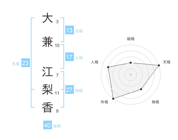 大兼 江梨香さんの天格は13画の5点!