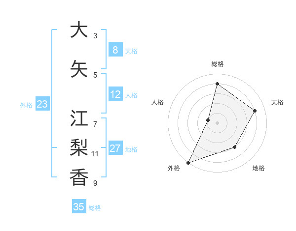 大矢 江梨香さんを姓名の画数から五運を鑑定