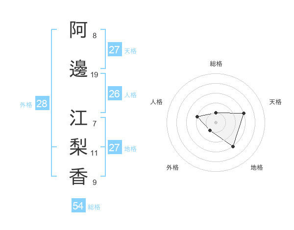 阿邊 江梨香さんの天格は27画の3点!