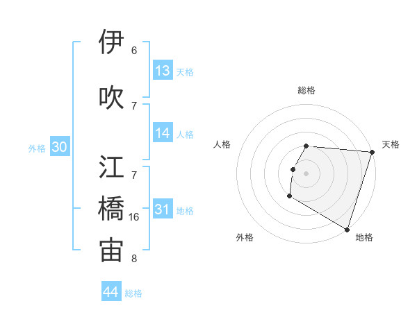 伊吹 江橋宙さんの総格は44画の2点!