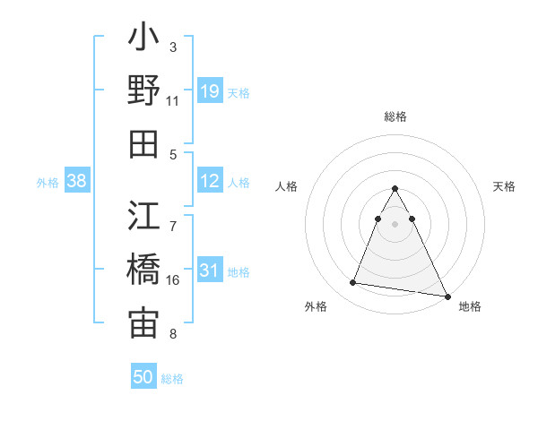 小野田 江橋宙さんを姓名の画数から五運を鑑定