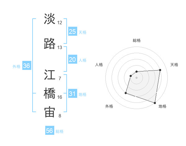 淡路 江橋宙さんを姓名の画数から五運を鑑定
