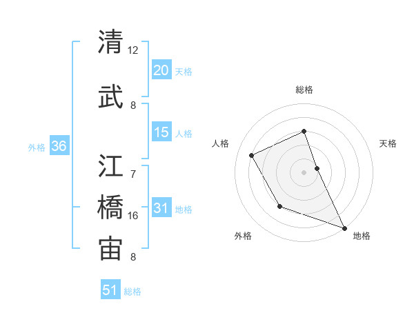 清武 江橋宙さんを姓名の画数から五運を鑑定