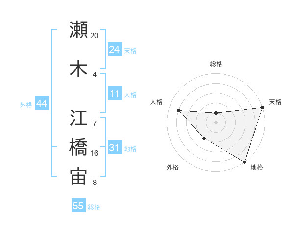 瀬木 江橋宙さんを姓名の画数から五運を鑑定