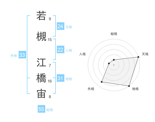 若槻 江橋宙さんを姓名の画数から五運を鑑定