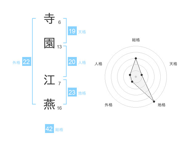 寺園 江燕さんの外格は22画の1点!