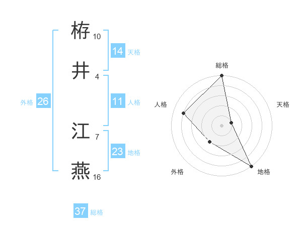 栫井 江燕さんの総格は37画の5点!