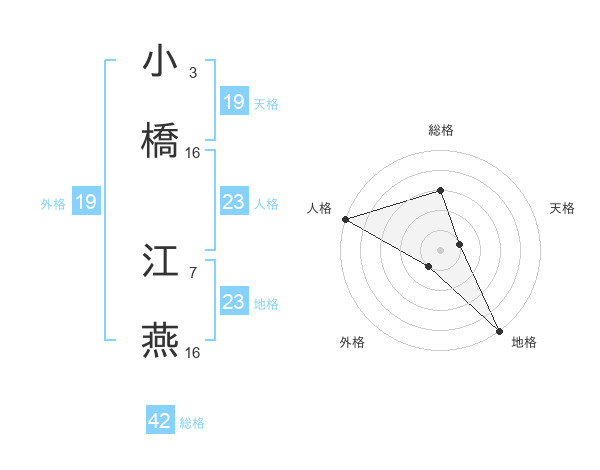 小橋 江燕さんを姓名の画数から五運を鑑定