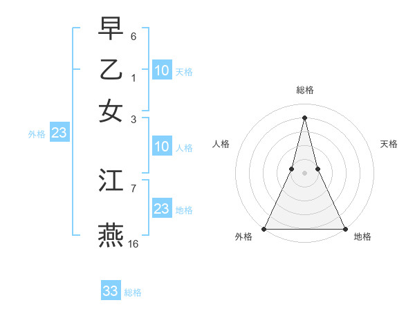 早乙女 江燕さんを姓名の画数から五運を鑑定