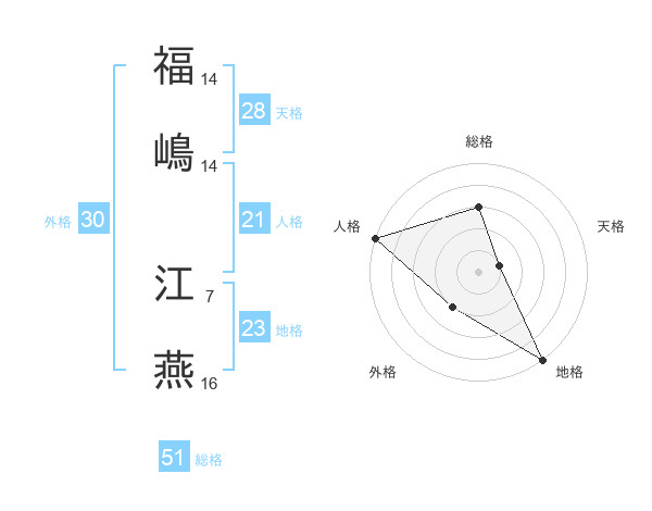 福嶋 江燕さんの総格は51画の3点!