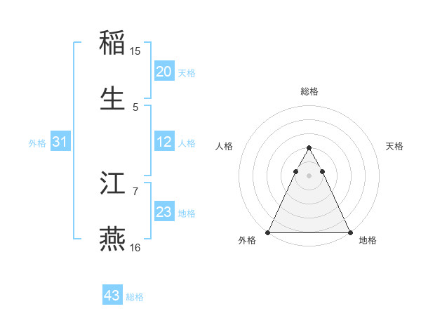 稲生 江燕さんを姓名の画数から五運を鑑定