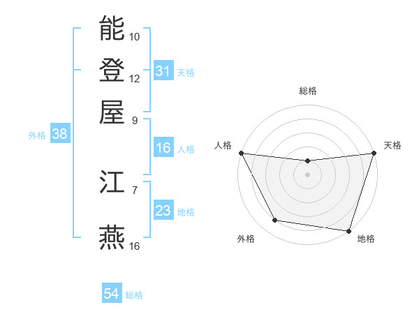 能登屋 江燕さんを姓名の画数から五運を鑑定