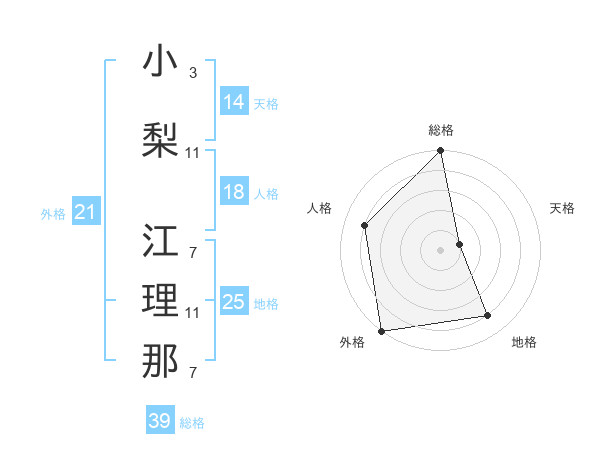 小梨 江理那さんを姓名の画数から五運を鑑定