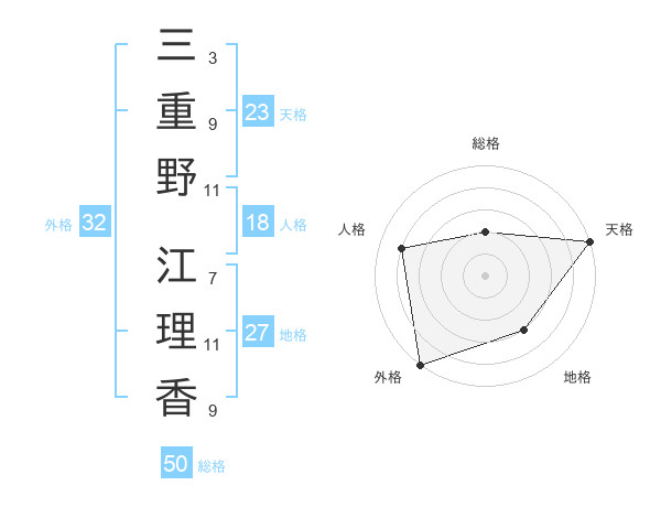 三重野 江理香さんを姓名の画数から五運を鑑定