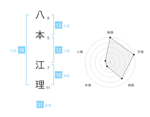 八本 江理さんの天格は13画の5点!