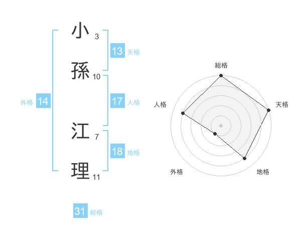 小孫 江理さんの総格は31画の5点!
