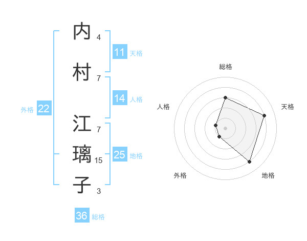 内村 江璃子さんを姓名の画数から五運を鑑定