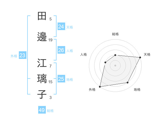 田邊 江璃子さんを姓名の画数から五運を鑑定