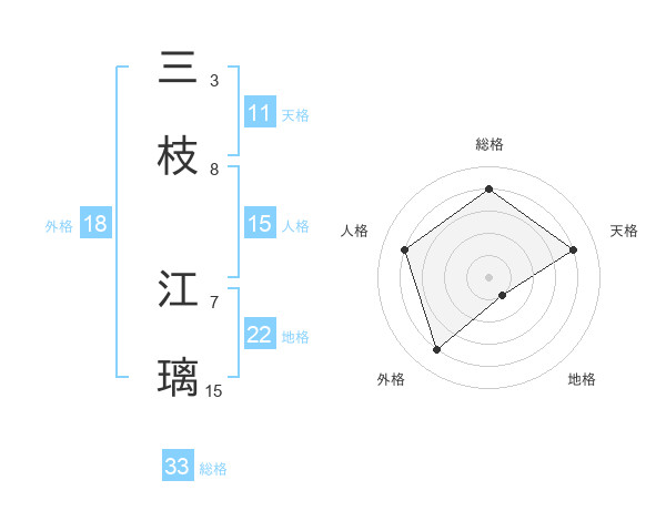 三枝 江璃さんを姓名の画数から五運を鑑定