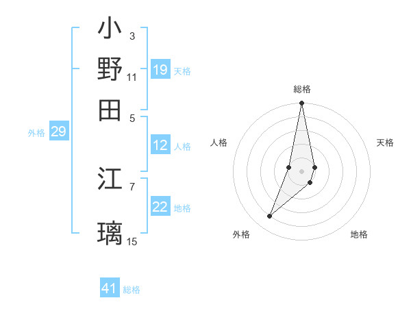 小野田 江璃さんを姓名の画数から五運を鑑定