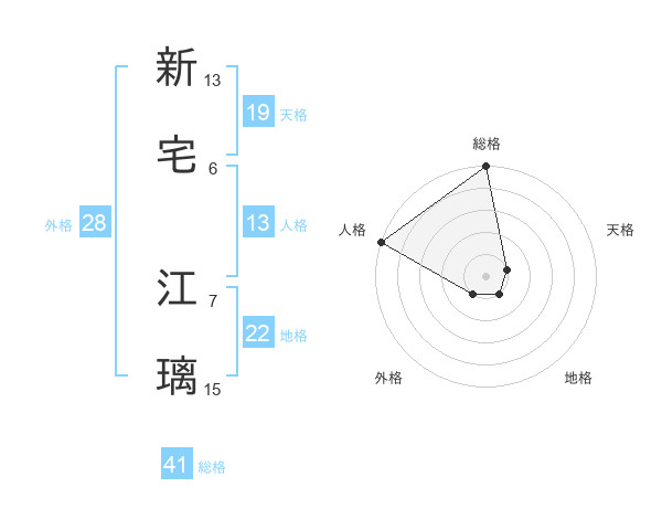 新宅 江璃さんの総格は41画の5点!