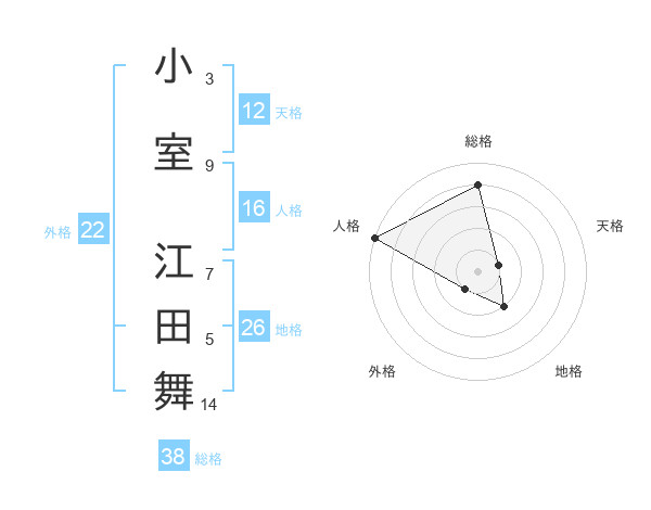 小室 江田舞さんの総格は38画の4点!