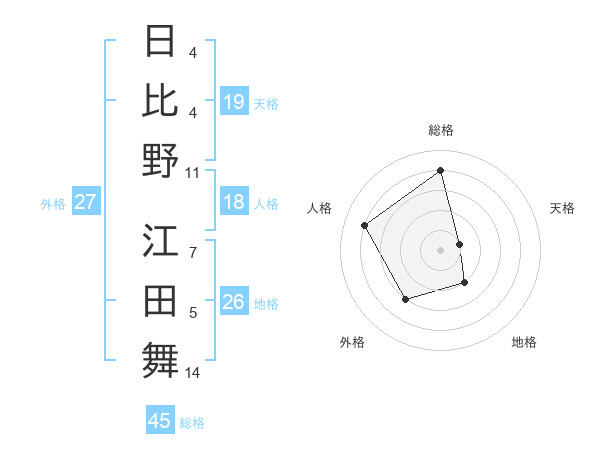 日比野 江田舞さんを姓名の画数から五運を鑑定