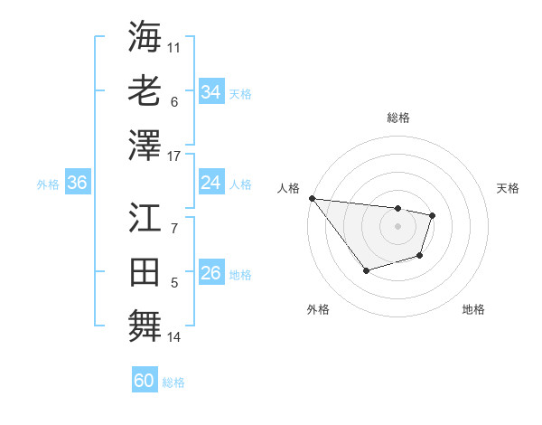 海老澤 江田舞さんを姓名の画数から五運を鑑定
