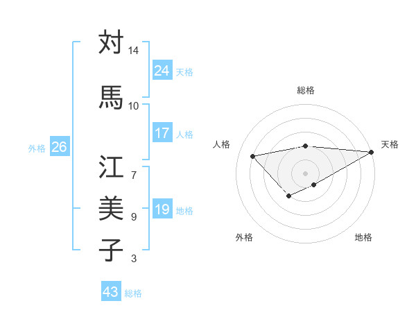 対馬 江美子さんの天格は24画の5点!