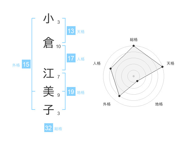 小倉 江美子さんの総格は32画の5点!