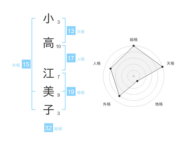 小高 江美子さんの天格は13画の5点!