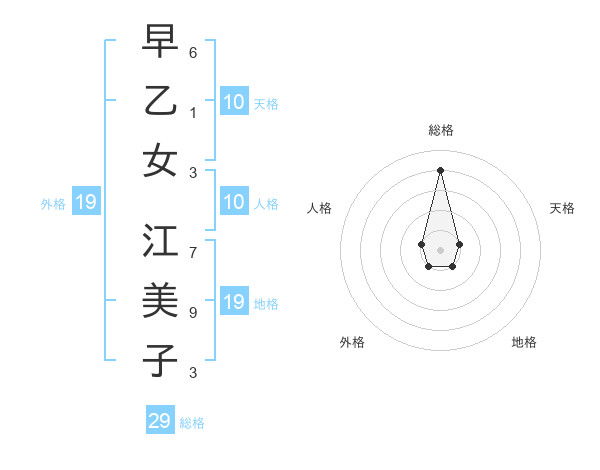 早乙女 江美子さんを姓名の画数から五運を鑑定