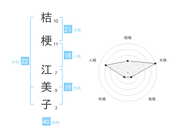桔梗 江美子さんの天格は21画の5点!