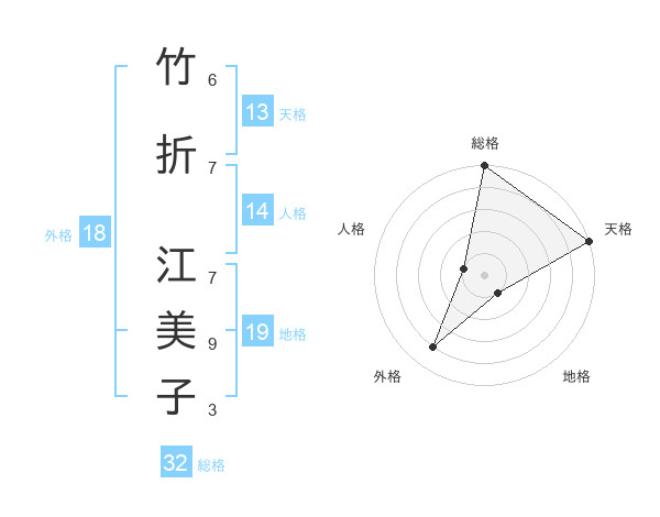 竹折 江美子さんの総格は32画の5点