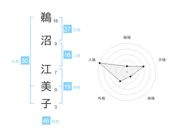 鵜沼 江美子さんの総格は46画の1点!