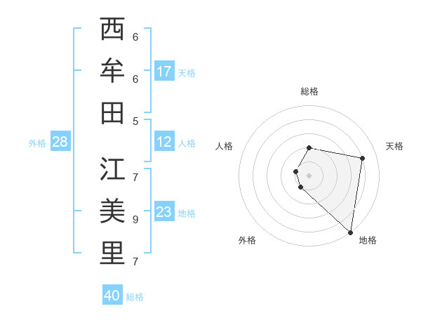 西牟田 江美里さんを姓名の画数から五運を鑑定