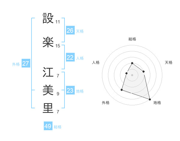 設楽 江美里さんを姓名の画数から五運を鑑定