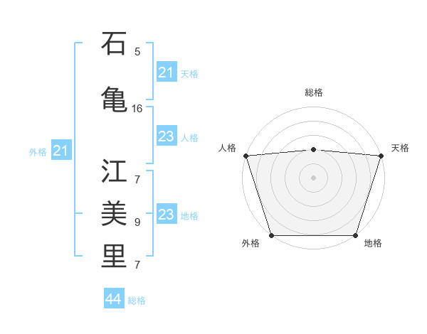 石亀 江美里さんを姓名の画数から五運を鑑定