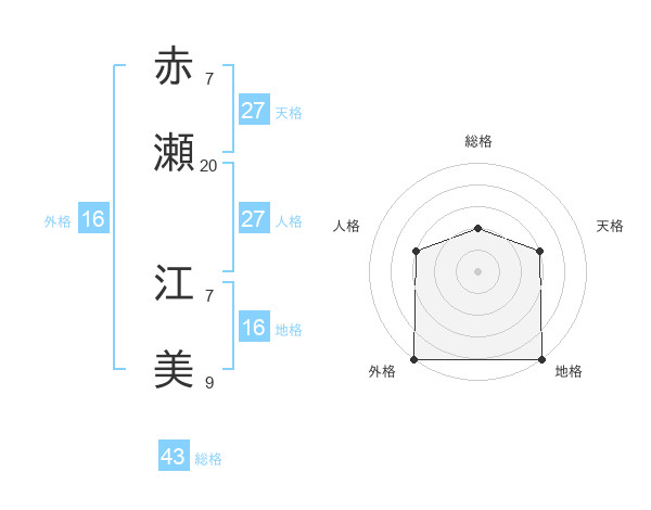 赤瀬 江美さんを姓名の画数から五運を鑑定