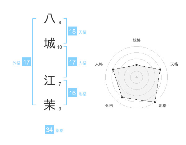 八城 江茉さんの総格は34画の2点!