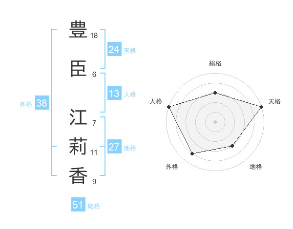 豊臣 江莉香さんを姓名の画数から五運を鑑定