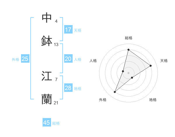 中鉢 江蘭さんを姓名の画数から五運を鑑定