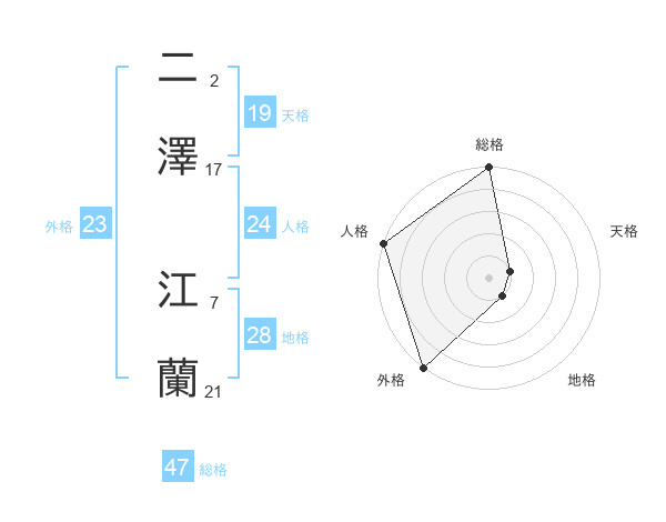 二澤 江蘭さんの総格は47画の5点!