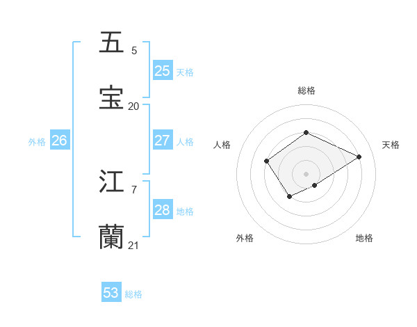 五宝 江蘭さんを姓名の画数から五運を鑑定