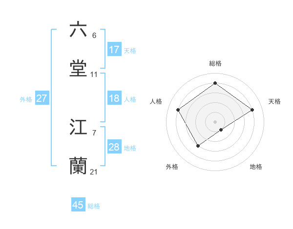 六堂 江蘭さんの天格は17画の4点!