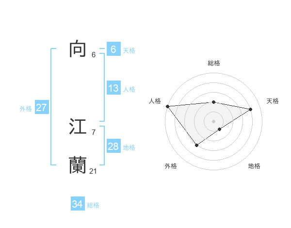 向 江蘭さんの総格は34画の2点!