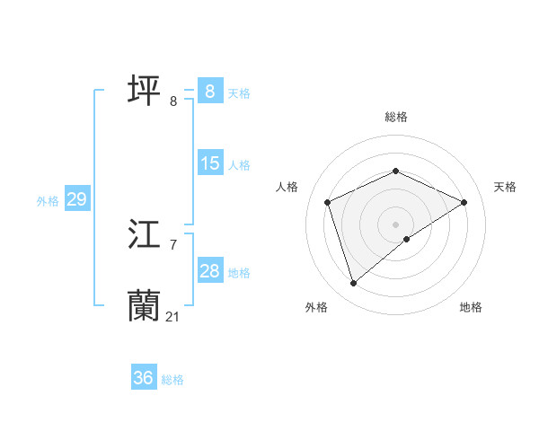 坪 江蘭さんの天格は8画の4点!