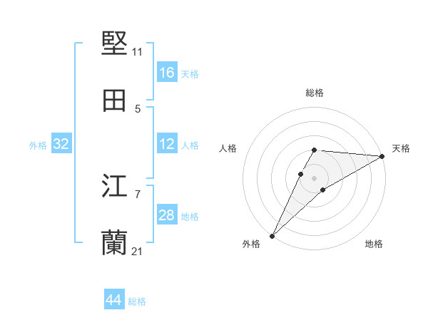 堅田 江蘭さんを姓名の画数から五運を鑑定