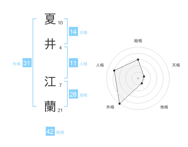 夏井 江蘭さんの外格は31画の5点!