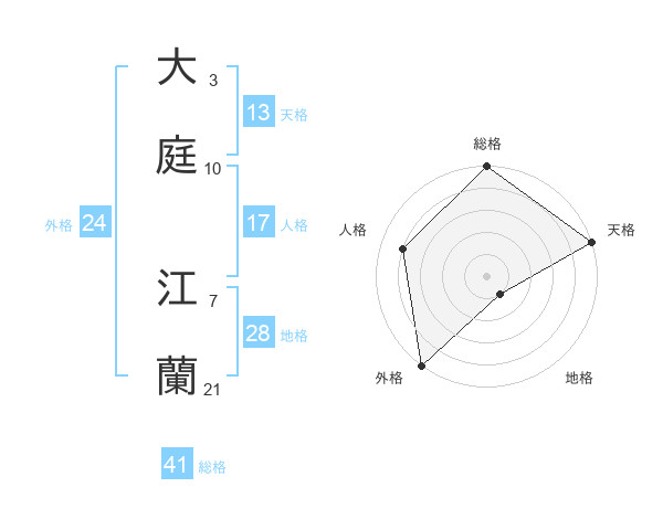 大庭 江蘭さんの外格は24画の5点!